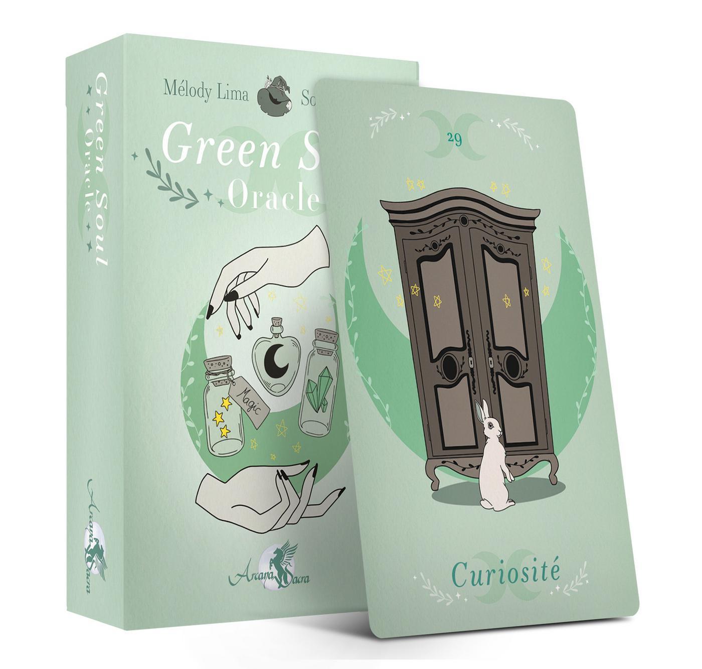 Bienvenue dans la gamme « Doudou·Deck Arcana Sacra » : pour petits et grands de 7 à 77 ans... Bienvenue dans l’univers witchy du Green Soul Oracle. Au coeur de l’enchantement et de la magie, le Green Soul Oracle t’invite à rejoindre son univers à mi-chemin entre la puissance druidique et l’âme des sorcières vertes. Il saura conquérir ton coeur de sorcière avide d’aventures et de réponses. Entends l’appel du tambour incessant : est-ce les fantômes de ton passé, le mage de ta sagesse intérieure ou les esprits du monde de la forêt ? Cet Oracle ne fera plus qu’un avec toi et te murmurera les prophéties auxquelles tu dois accéder. Apprends à te faire confiance et laisse s’exprimer la magie en toi !