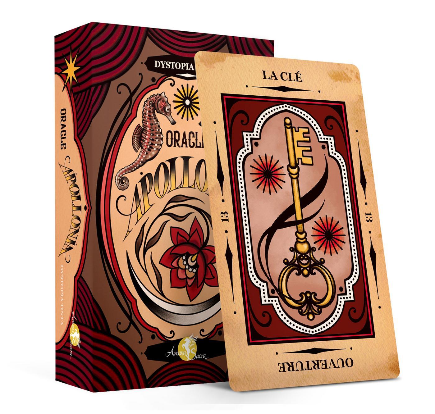 Archétype de la femme mystique, Apollonia est la cartomancienne qui vous accueille dans son antre hors du temps. À travers l’oracle qui est entre vos mains, elle vous entraîne sur des chemins parsemés d’étoiles au parfum d’Orient, de contes andalous et de folklore slave. Dans ce voyage d’or, de velours pourpre et de racines, elle vous invite à une introspection afin de trouver, d’apprivoiser et de nourrir votre essence et ainsi de célébrer la puissance de votre être. Entrez, soyez les bienvenus et laissez-vous envoûter par la magie d’Apollonia ! 49 cartes et un livret de 140 pages en couleur.